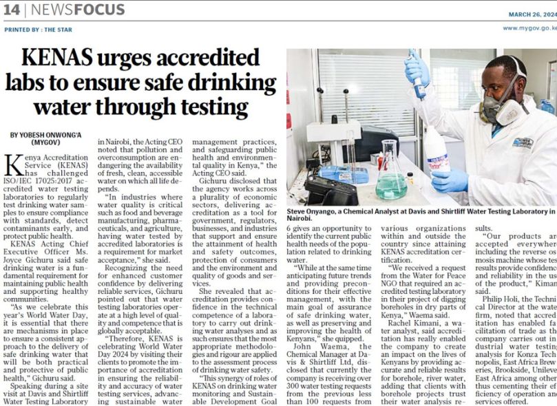 D&S Featured in the Standard on accredited labs doing Water Testing26-03-24