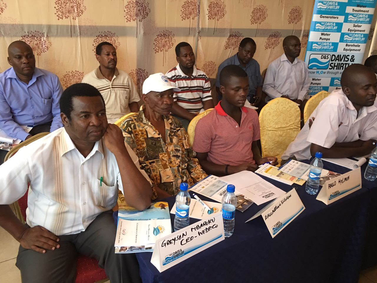 Davis & Shirtliff Tanzania MD Benjamin Munyao and D&S Mwanza Branch Manager Ellison Malyi recently took the initiative of holding a large training session for partners at the New Mwanza Hotel. The well attended training with over 80 participants was aimed at improving awareness and knowledge in the various technologies in the power, solar and water treatment solutions.